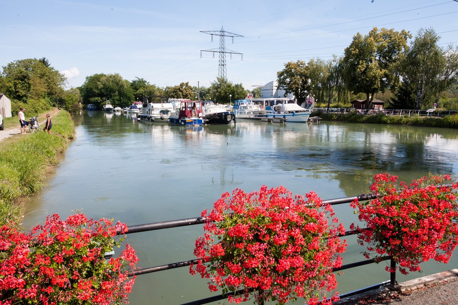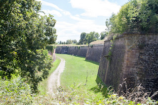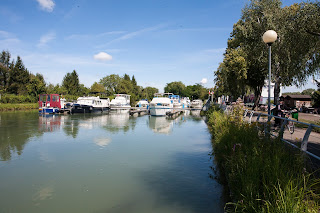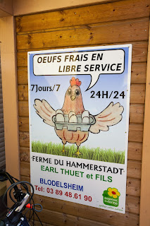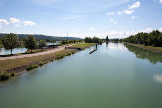 Day Sixteen: Thursday 11 August 2016 Basel to Brisach - about 65 km. Our longest ride so far. John and Cheryl got away some time before us. As usual, we're not fast movers when it comes to striking camp and loading our bicycles. We eventually got going and shortly afterwards we met John and Cheryl, who'd just got going again after stopping for coffee and croissants. The temperature was quite pleasant for a change following the early morning chill. This was the first day we'd had where it wasn't either freezing or roasting. We also found out the this particular route was largely devoid of places to buy refreshments or obtain drinking water from public fountains. It was a long haul too. Much of the route was alongside the Canal du Rhone au Rhin so the going was easy. We hadn't been going all that long when I found my front tyre was running flat. Another puncture. Once again, I repaired the tube with a patch, reassembled everything and then found the tyre had gone flat again. Loyally, John and Cheryl and stayed with us whilst all this was going on. I used the last of the two tubes I'd brought from England and off we went again. Or rather, not quite. My sleeping mat had fallen off and headed for the canal. Some water plants had stopped it going into the water but it was out of range of my limbs - without me going into the water too. Some ingenuity was required for this. With one hand I held one of our longest bungee cords and the other hand was holding onto Cheryl's outstretched hand. I dangled the bungee cord over the cord of the stuff sack that contained the mat and somehow managed to hook it in such a way that would have made a top class fisherman envious. All packed, and off we went again. The path led us for some kilometres along the towing path of the canal. We cracked on at quite a pace and extremely fortuitously stopped for a break underneath a bridge where there was some shade. Much to our astonishment, John and Cheryl and nothing at all by way of food and drink. JP and I shared what we had with them. We gave them a bottle of juice whilst we drank a bottle of milk. We shared our apple sponge cake and ate our paté filled roll. The bridge marked the scene of the battle that took place at Pont du Bouc in November 1944. We left the towing path at this point (or Pont), headed across the bridge and into a forest for some 18 km. If we'd had another puncture it would have been a serious problem. After getting safely through, we eventually came to a village where we were able to replenish supplies and eat another meal. The French must really love eggs, as outside the shop was a vending machine where eggs could be purchased 24 hours / day!