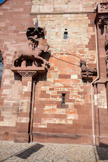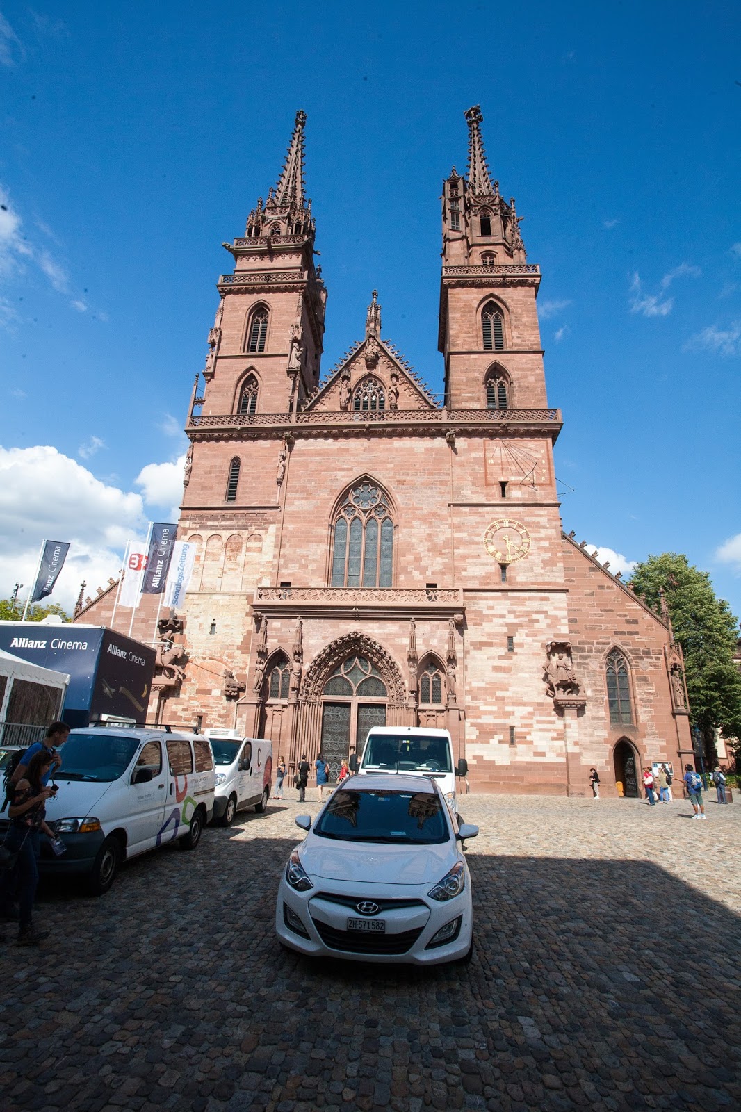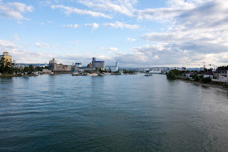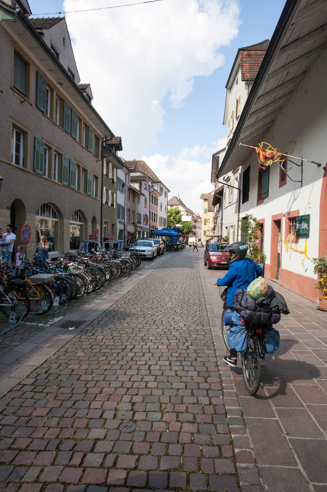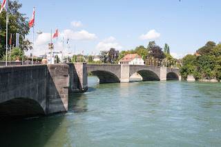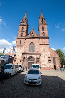 Day Fifteen: Wednesday 10 August 2016 Rheinfelden to Basel - about 25 km. Today has been a struggle – especially for JP. Despite limiting his swimming time to not much more than an hour, JP has found it hard to keep going today – hence the short distance covered. We rode into Rheinfelden and found this to be quite an interesting place. We went in to a local bakery and, as is so often the case, bought some food and milk and sat out side the shop tucking into our picnic. I can down a litre of milk in one sitting, especially when it's hot. In terms of weather, it is often cold one day and roasting hot the next. After Rheinfelden, we pressed on to Basle where we paid a quick visit to the cathedral before finding some food. We then set out to find a campsite a few kilometres outside the city. By this time we were rather cold and the weather wasn't encouraging. We dashed over the bridge into Germany to visit the supermarket to buy food and brought it back to the campsite to eat. The wind picked up whilst we were eating yet another picnic, so we escaped into the tent where there was some chance of being a little warmer.