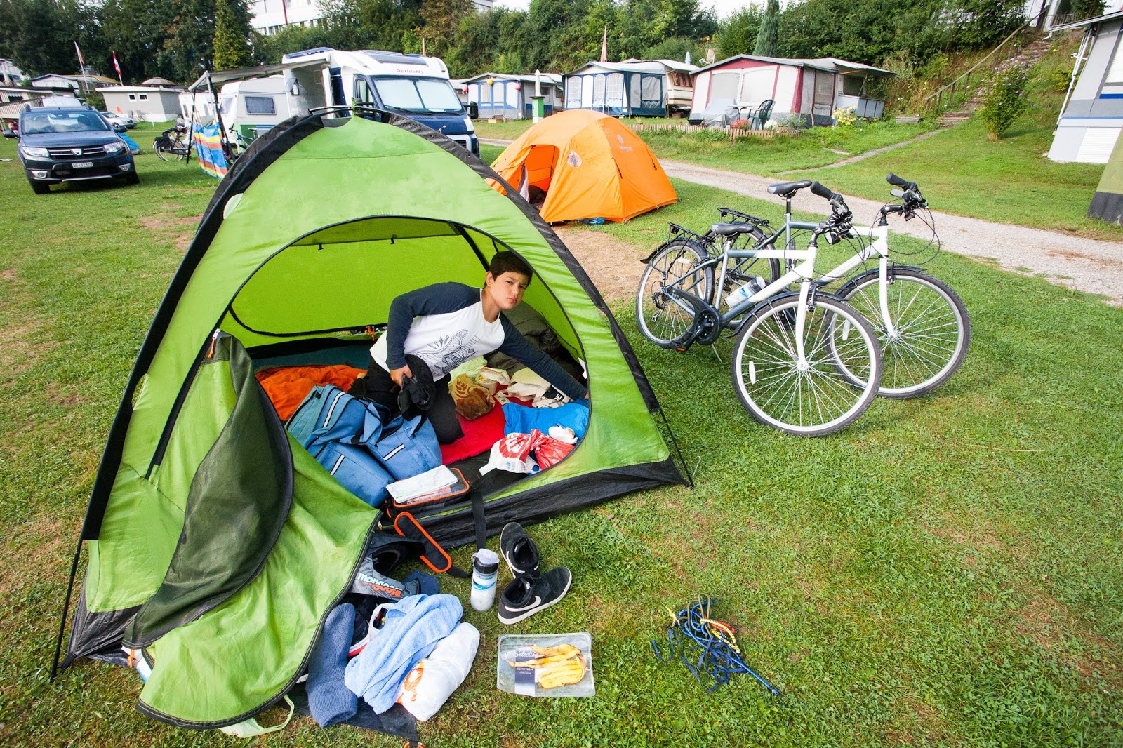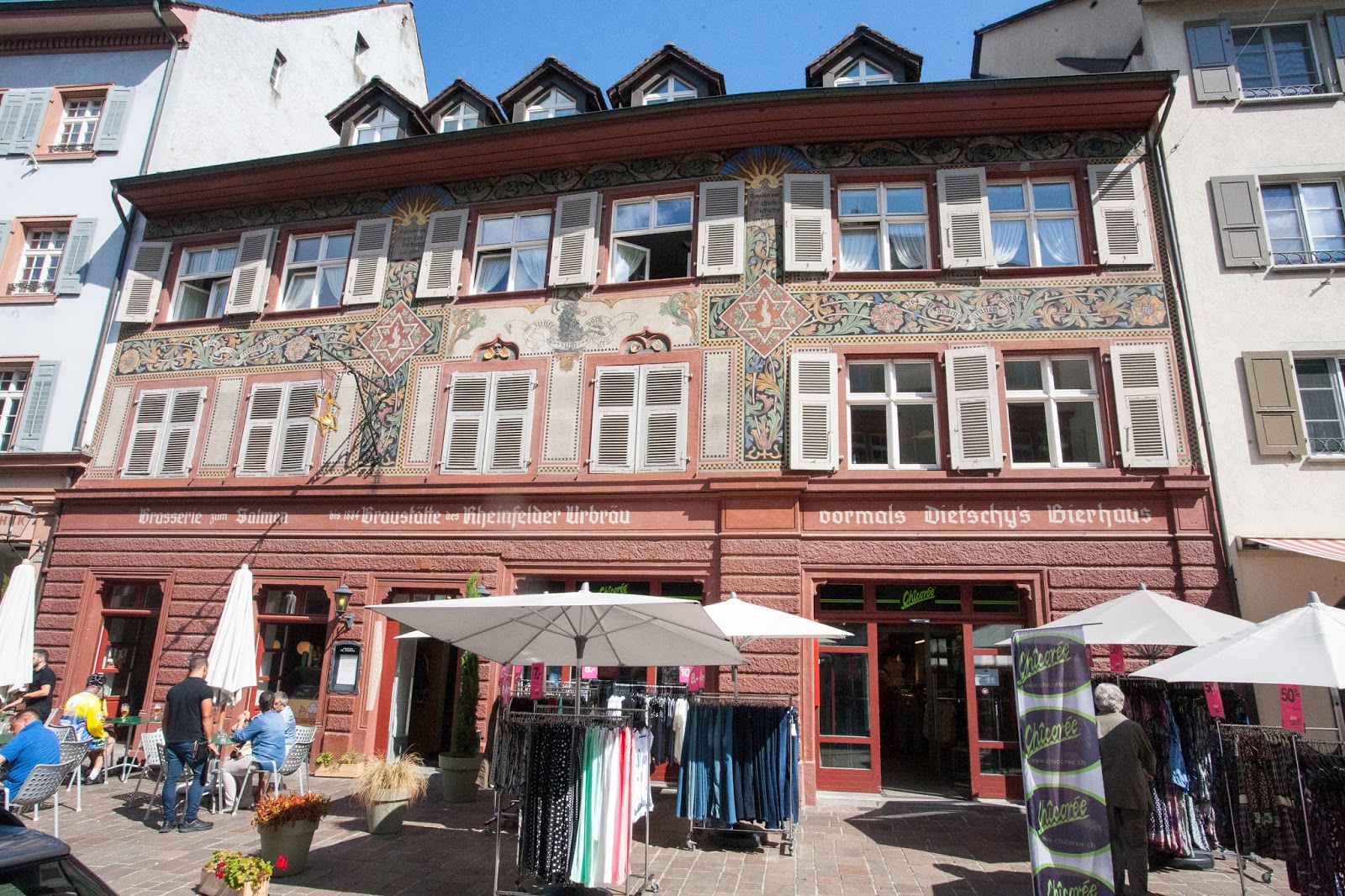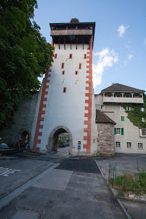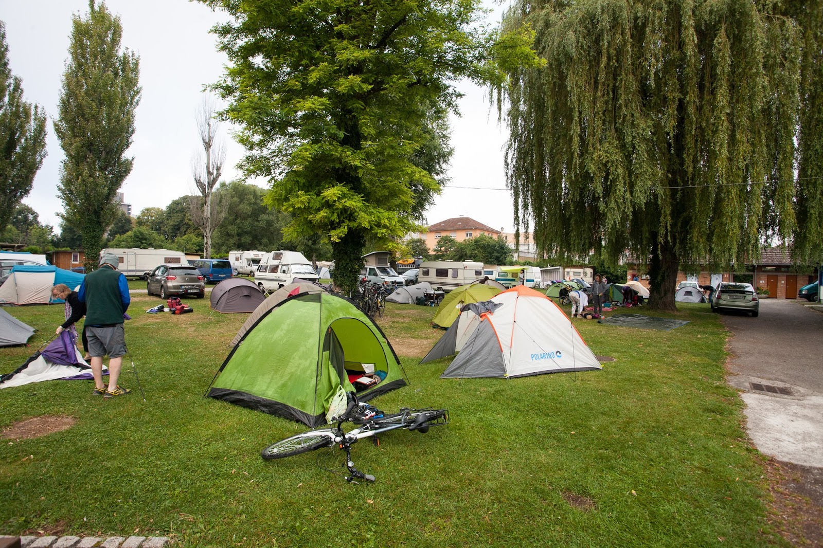 Day Fifteen: Wednesday 10 August 2016 Rheinfelden to Basel - about 25 km. Today has been a struggle – especially for JP. Despite limiting his swimming time to not much more than an hour, JP has found it hard to keep going today – hence the short distance covered. We rode into Rheinfelden and found this to be quite an interesting place. We went in to a local bakery and, as is so often the case, bought some food and milk and sat out side the shop tucking into our picnic. I can down a litre of milk in one sitting, especially when it's hot. In terms of weather, it is often cold one day and roasting hot the next. After Rheinfelden, we pressed on to Basle where we paid a quick visit to the cathedral before finding some food. We then set out to find a campsite a few kilometres outside the city. By this time we were rather cold and the weather wasn't encouraging. We dashed over the bridge into Germany to visit the supermarket to buy food and brought it back to the campsite to eat. The wind picked up whilst we were eating yet another picnic, so we escaped into the tent where there was some chance of being a little warmer.