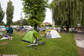 Day Eighteen: Saturday 13 August 2016 Colmar to Who knows where? Not a good day. We've had a series of issues with various bolts coming loose (some falling out) of various parts of our bicycles. Today, it was JP's turn to lose a critical bolt securing his pannier rack. This was quite late in the afternoon in an area infested with mosquitoes. Not a fun place to be crawling around trying to fix something mechanical - spitting mosquitoes out as you work. They were driving JP mad! I just ignored them, except to spit them out. We also had huge navigational problems and at some point we found ourselves less than 20 km from where Brigitte had dropped us off the day before! We seemed to be going round in circles all day. Very frustrating. We probably shouldn't have gone to Colmar at all as we got mixed up between the Colmar Canal and the Canal du Rhone au Rhin. We found a campsite by the side of a lake - not a good place. The whole area was infested with mosquitoes and ants and, as JP had ripped a hole in the tent during the first week of our travels, they had access to us all night. JP is now covered in bites. He stood in the tent doing a war dance trying to get rid of them whilst I just ignored them. I sent JP off to find some food and he returned with double-cheeseburgers and chips for each of us. The last time I ate a burger in France, I got a dose of food poisoning. I hoped for the best and chewed on. |