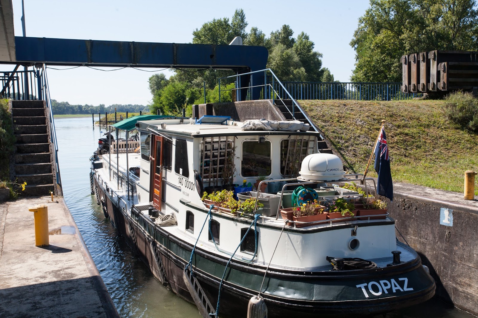 Day Nineteen: Sunday 14 August 2016 Camp to Strasbourg - About 50 kilometres. Today it is 3 months since Annelise went to Heaven. She seems to still be with us in many ways. We talk about her a lot. A somewhat better day today, as far as riding and travelling are concerned. It was extremely hot on the road today. After we'd run out of water we cycled on until we found a few houses. I banged on the door of one and a young man filled our water bottles and gave us a full, new bottle of mineral water. So kind of him and a great help to us. JP says his legs are getting stronger but his energy levels are getting lower. However, he kept pedalling all day and did well. He did fall off once in the late afternoon, probably because he was so tired. At some stage we came across the a canal where we stopped for a snack. I give quite a lot of the food preparation tasks to JP which he seems to enjoy. We hadn't bothered with breakfast so we ate some of the surplus from yesterday - old baguette with old ham and very, very soft Camembert cheese. No cutlery was available so it was a matter of fingers and teeth. As we sat by the lock, we could see a barge approaching. Once in the lock, we found that the Topaz had British owners with whom we had a chat. They lived on their boat throughout the summer and cruised all over Europe with it. At about lunchtime, we found a rather nice restaurant by the side of the road in Krafft. We made our way in looking like a couple of scruffy, sweaty tramps. We enjoyed our meal - and the apricot juice. In the late afternoon we arrived in Strasbourg. After finding a small shop open, unusual in much of Europe on a Sunday, we bought some basic supplies and found a park where we could sit and eat. A crowd of youngsters came by and I told them about our adventure. They were amazed! and clapped us and said 'Salut'. Great kids. We then went to an IBIS STYLE hotel and found they were rather too expensive for us. We got back on our bicycles and after stopping to chat to a couple of hikers, we came to a Formula 1 Hotel. A pretty dire sort of hotel but it was cheaper than the IBIS. We have just had a picnic in our room. And that's another day over. |