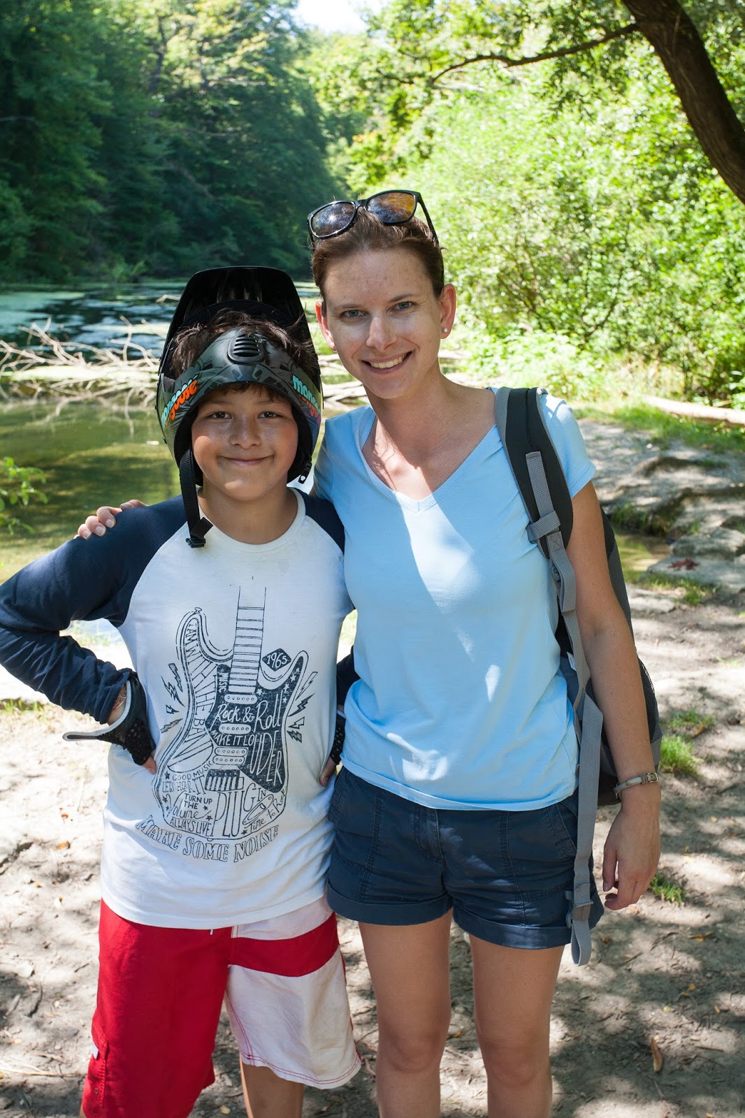 We soon joined the correct path on top of a flood-dyke and after a short time found the waterfall that Laura was seeking – more like a small weir than a waterfall. JP said he wanted a break and headed for the water, as usual. We could see fish swimming in the clear water. Laura and I chatted about the better opportunities there are nowadays for people to travel compared to when I was a young person of her age. I told her that when I was born both our countries were trying to recover from the devastation caused by World War II and there were no home computers or internet that are standard in almost all homes now.