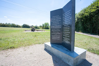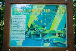 We started off in the right direction but that wasn't to last very long as we got somewhat confused around the Chateau de Pourtales where we entered a forest. We rode along quite happily until we came to a 'T' junction with no signs of which way to go. For a change, we weren't the only people who were confused by this either. However, the good thing we did see which we'd have otherwise missed was a memorial board dedicated to the crew of a RAF NZ Lancaster Bomber crew who ,presumably had come down in the place during World War II in 1944.