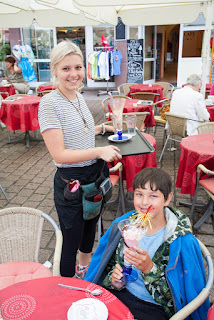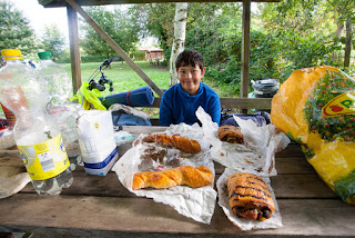 Somewhere along the way we were hailed by someone sitting outside a building that may have been a beer garden or restaurant. We stopped and a lady called out to me. It was the lady who had helped me find the bakers shop yesterday morning. She told me that she had visited the camp site to see us with some Asprins for JP but because we were in our tent she felt too shy to disturb our rest. How kind.