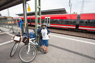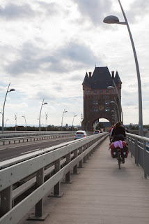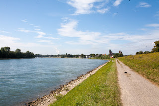 We left the camp reasonably early for us - probably by about 1000 hrs. I asked the way to the River Rhine from the site owner and off we pedalled - I still had two bags of food dangling from my handlebars.