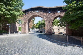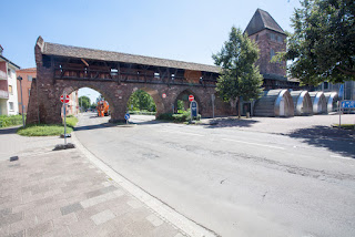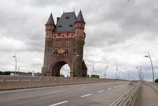 Just as we were about to move on, three girls from the campsite at Speyer rode past calling to us. We rode with them for the rest of our journey. They set a cracking pace which we couldn't maintain so they slowed their pace somewhat or stopped at intervals to wait. I said that, according to my guidebook, there was a campsite at Worms. We spent a great deal of time looking for it and got sent on many false directions before giving up and heading back to the city. For the second time we crossed the huge bridge into Worms following the girls on their bicycles.